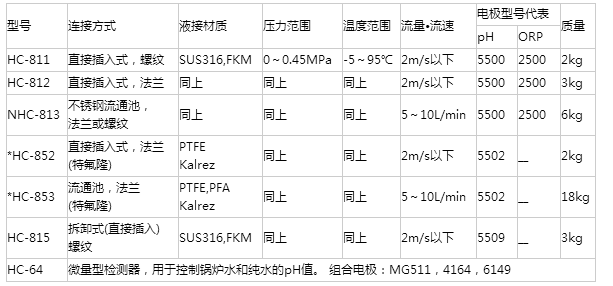 用于排水及上下水處理、排煙脫硫?鍋爐設備等一般的在線過程控制,應用廣泛。通過連接方式和測定條件選擇合適型號